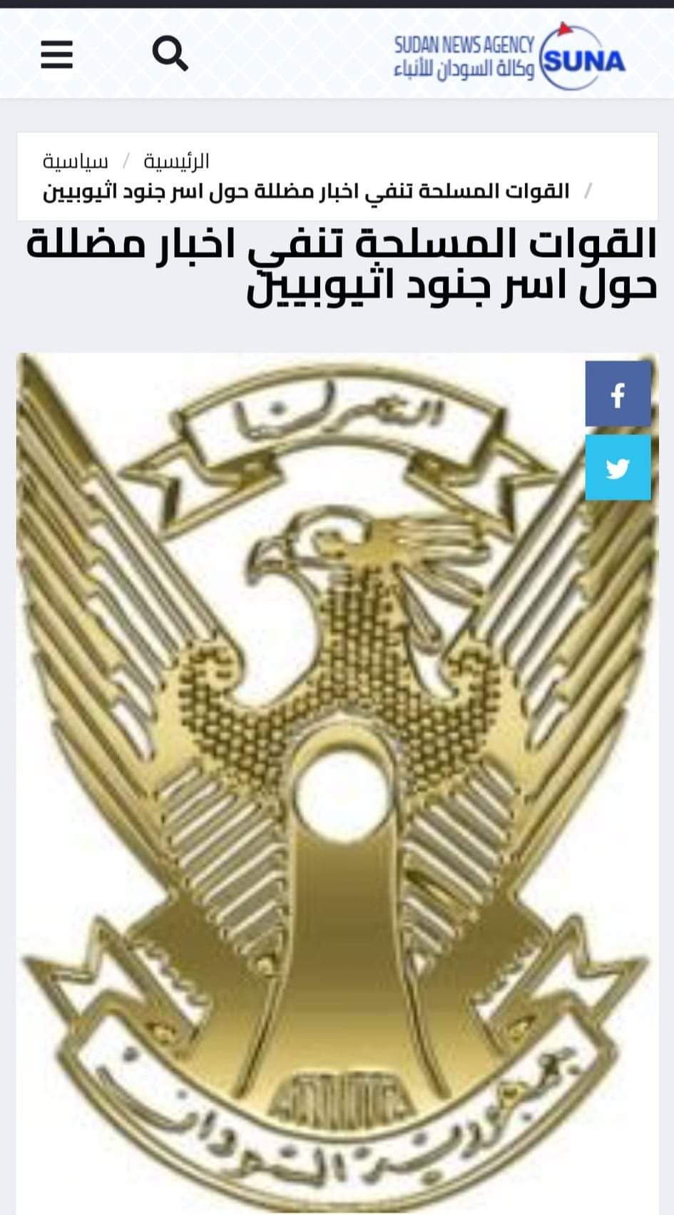 القوات المسلحة تنفي اخبار مضللة حول اسر جنود اثيوبيين “ “በተለያዩ ሳቴላይት ቻናሎች ድረገፆች ስለ አልፋሽቃ ስለ ሱዳን መከላከያ እና በምስራቅ ድንበር የኢትዮጵያ ወታደሮች ቤተሰቦችን