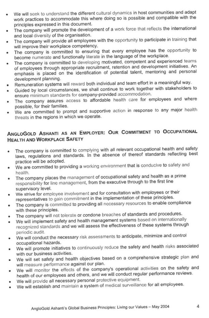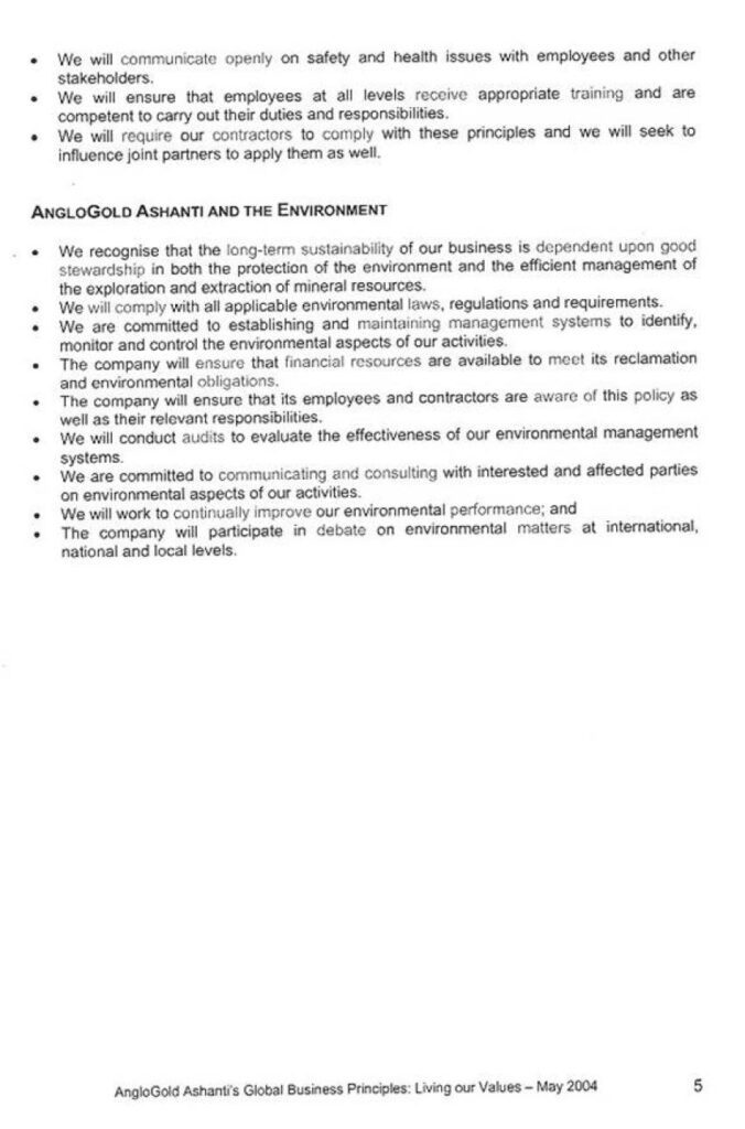 [178] Fax from Steven Lenahan, Executive Officer, Corporate Affairs, AngloGold Ashanti to Anneke Van Woudenberg, Human Rights Watch, December 7, 2004. Document on file at Human Rights Watch.