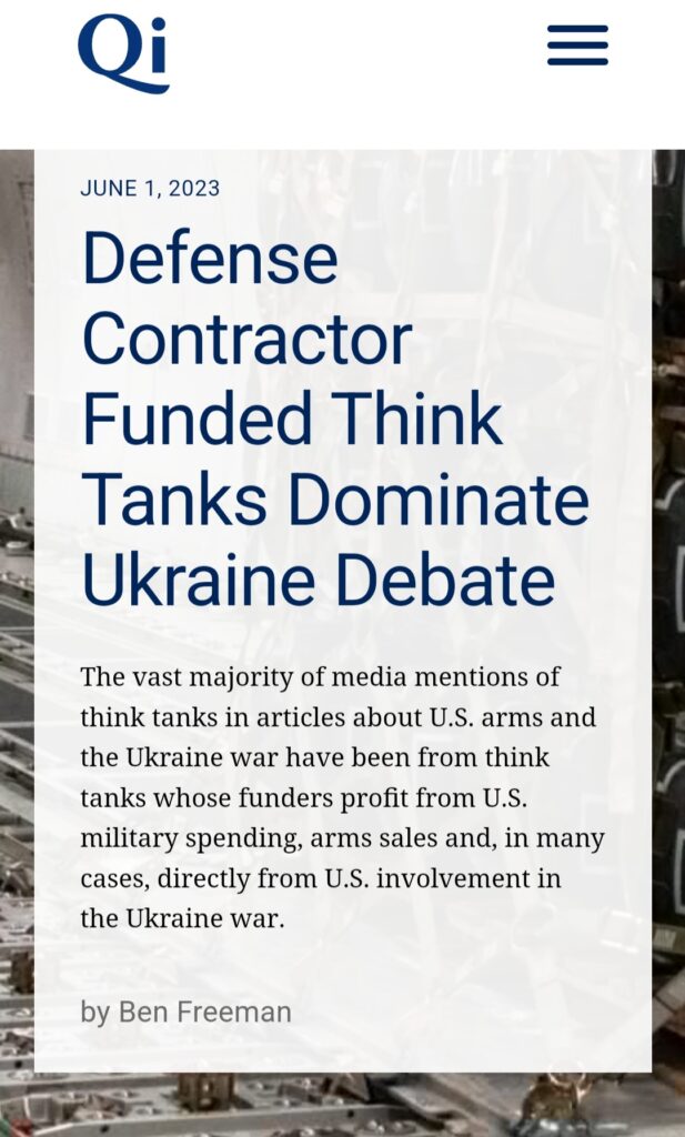Defense Contractor Funded Think Tanks Dominate Ukraine Debate