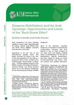 What emerges is that diasporas are not passive actors. Rather, they have sharpened their transnational role by leveraging their multiple identities and pursuing different tasks in the context of fluid internal-external dynamics and a changing landscape in the MENA.[21] Thus, the choice of some international institutions to focus only on their economic contribution[22] obscures substantial features of the political role and identity of diasporas.