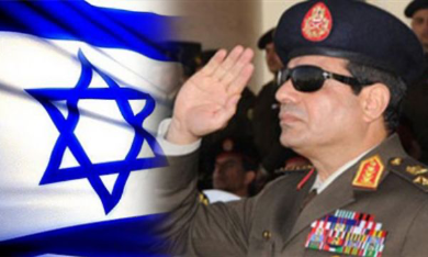 Immediately after the coup the Israeli, UAE and Saudi Arabian governments invested considerable diplomatic muscle to influence European and US policy makers on Egypt in order to make sure that international pressure was not employed against the military take-over. Israeli emissaries traveled to Washington on several occasions, urging policy makers and the White House to embrace El-Sissi, forget the Islamist and Morsi as well as a call for the resumption of badly needed military aid. The Ynet news site declared in a headline, “Al-Sissi is not Israel’s friend, he’s a partner” and stressed that, “coordination between Cairo and Jerusalem is intimate and tight.” The article mentions that “a cartoonist from the bad guys’ side drew al-Sissi wrapped with a flag of Israel, dialing the red phone to Prime Minister Benjamin Netanyahu’s office in Jerusalem to receive instructions for the negotiations with the Hamas delegation,” a reference to the negative role played by the Egyptian dictator during summer 2014 assault on Gaza.[20]