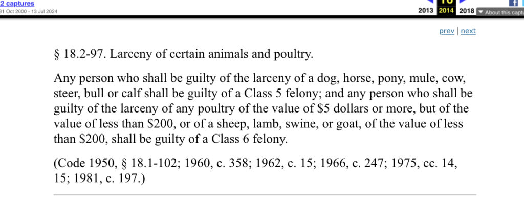 10 On Your Side looked in the Code of Virginia and learned stealing a dog is a Class 5 felony — read the legislation below