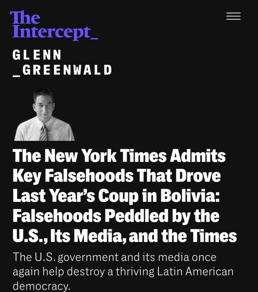 The New York Times Admits Key Falsehoods That Drove the Coup in Bolivia: Falsehoods Peddled by the U.S., Its Media, and the Times